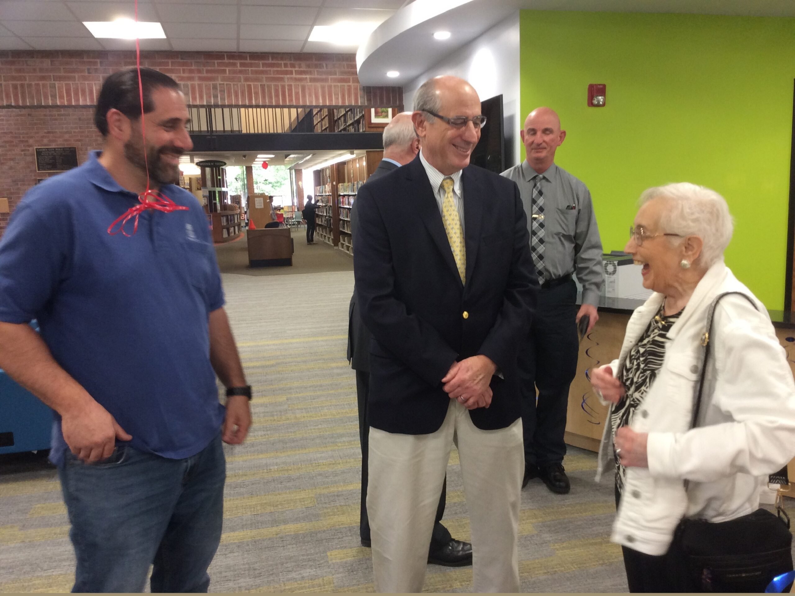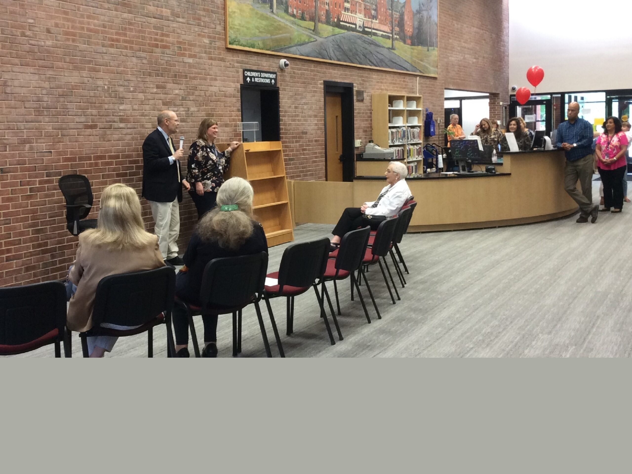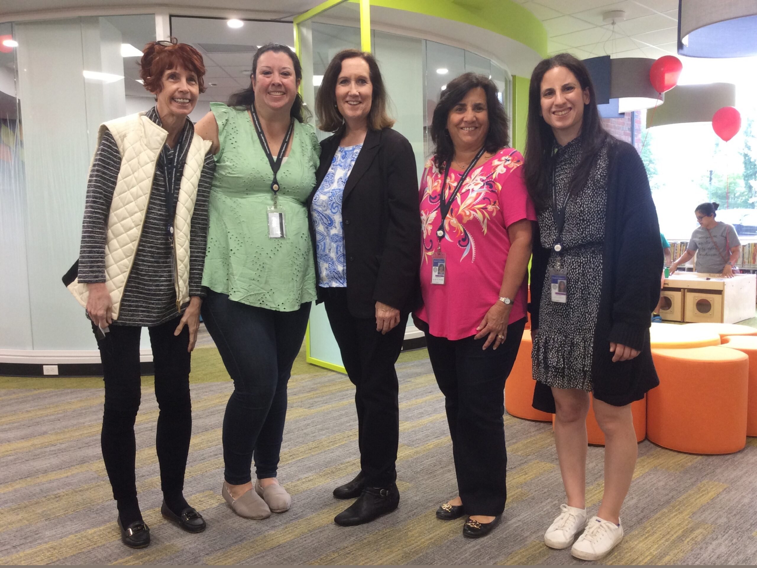 L-R: Regina Foge, children’s librarian; Laura Giunta, young adult librarian; Lauren Nelson, library page & Barbara Grace, head of Children’s Services